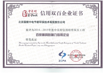 當(dāng)前位置: 國能中電公司動態(tài)> 我公司被評為2014-2015年度中關(guān)村信用培育雙百工程“百家最具影響力信用企業(yè)”