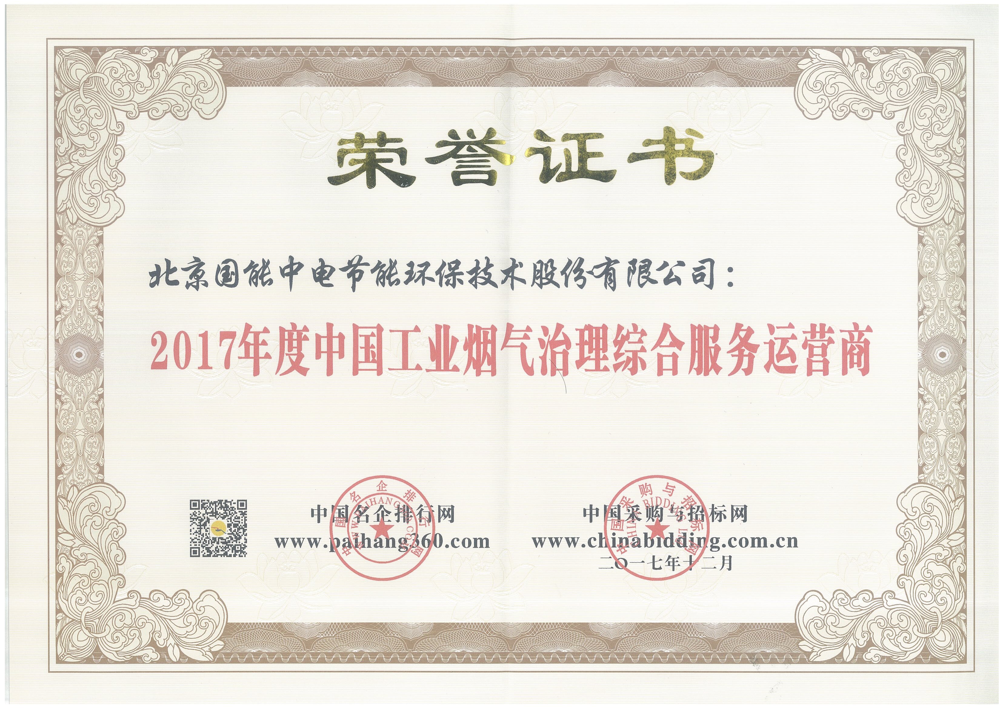 2017年度中國工業(yè)煙氣治理綜合服務(wù)運營商