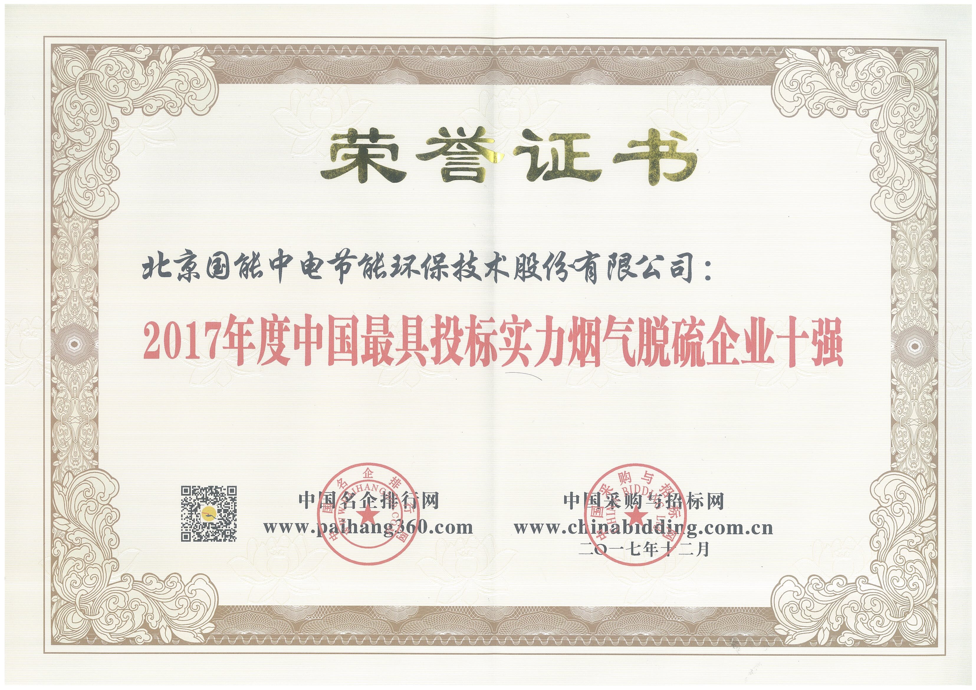 2017年度中國最具投標實力煙氣脫硫企業(yè)十強
