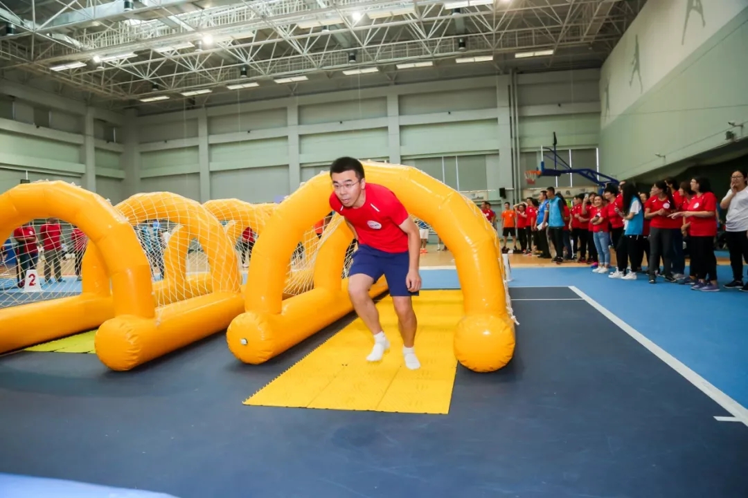 此次活動的項目經過了精心設置,將在職工中普遍開展的羽毛球、籃球項目設置為專業競技項目,此外,綜合考慮職工身體素質差異和群眾參與性,設置了輕量化、趣味性更強的團體競技項目七項:滾滾向前、旋轉飛碟、旱地龍舟、漢諾塔、動感顛球、超級障礙賽、拔河。