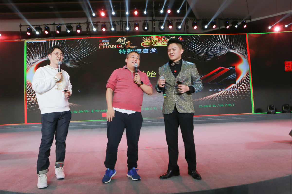 年會現場抽獎送出了若干華為手機、平板電腦、智能音箱等數百份驚喜大獎。